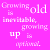 Description: Text: Growing old is inevitable, growing up is optional